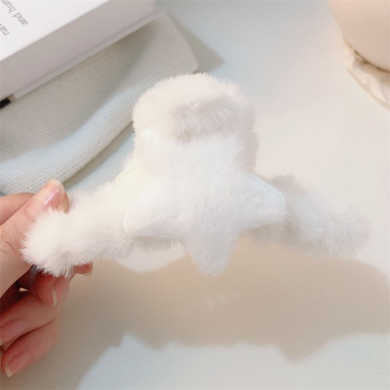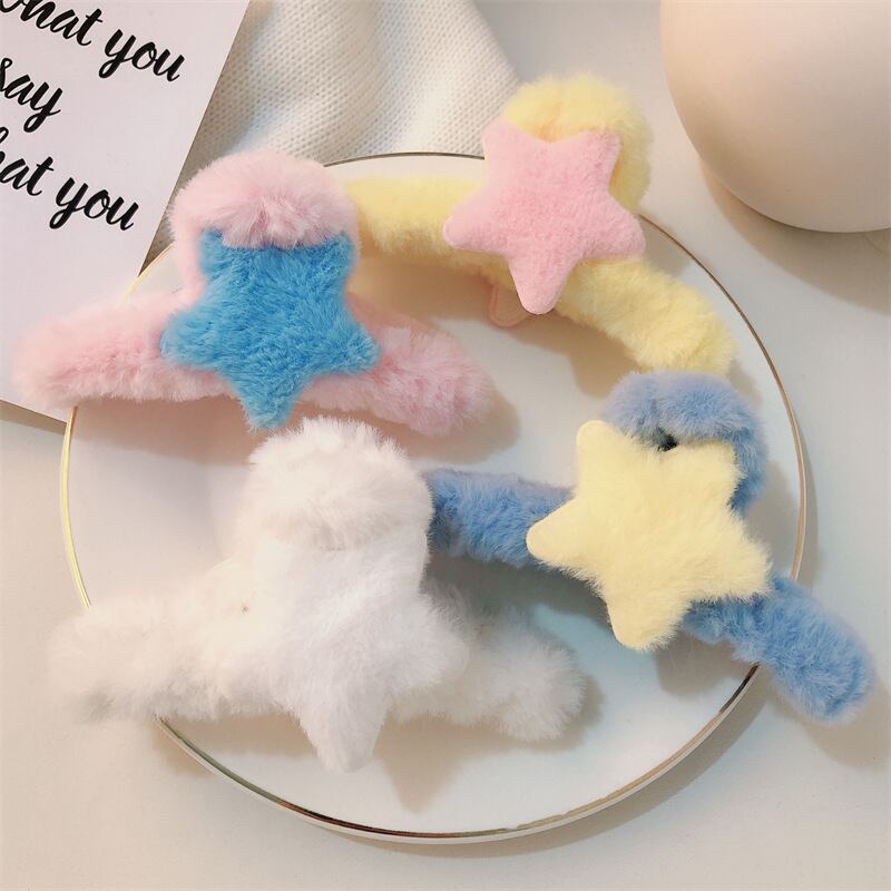 4個入 ふわふわヘアクリップ 星モチーフ 可愛い 秋冬ヘアアクセサリー YP-010