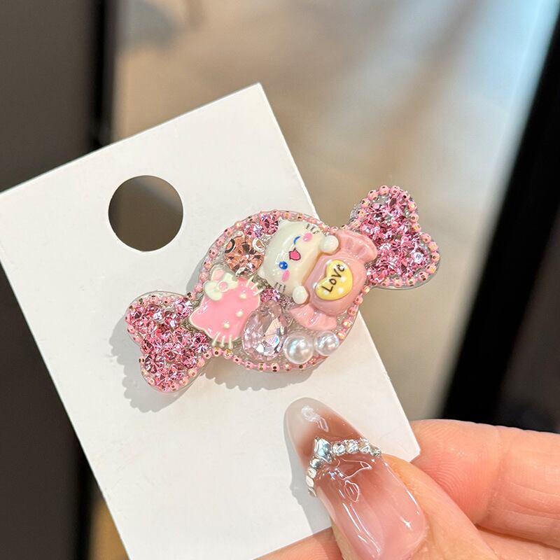 キラキラ輝くビジューが施された、ハローキティデザインの可愛いヘアクリップ。