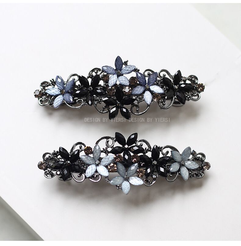 繊細な花モチーフが散りばめられた、シンプルな一字型ヘアクリップ。