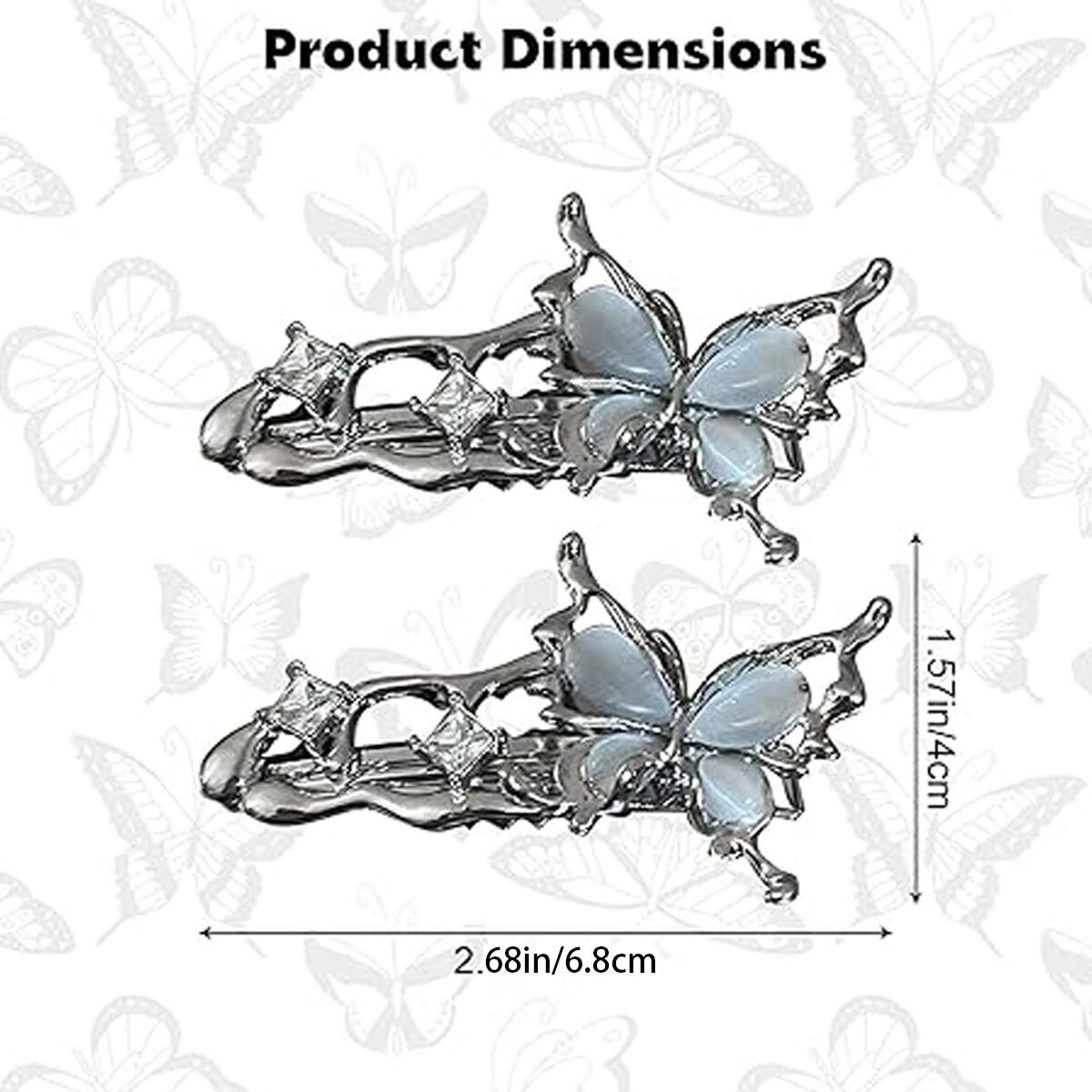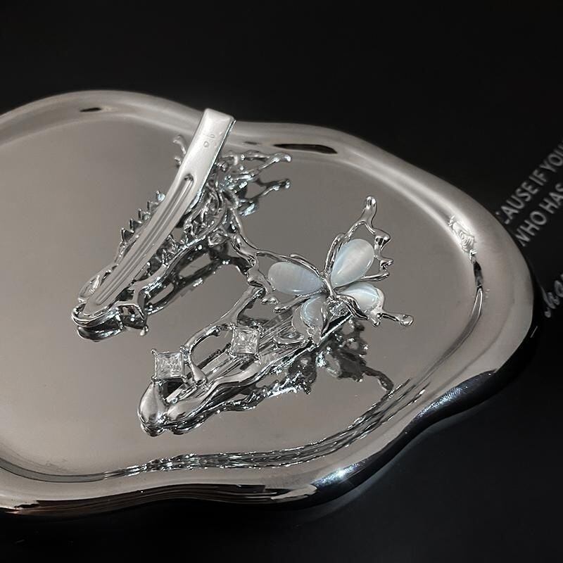 【3個セット】リキッドクールスタイル キャッツアイバタフライヘアクリップ メタル一字クリップ YP-049