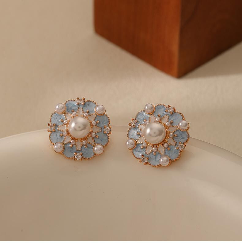 フレンチスタイル ブルーエナメルフラワーピアス クラシック×上品デザイン YP-054