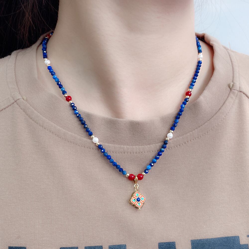 敦煌カラー 新中華風 ラピスラズリ天然石ビーズネックレス ハンドメイド風デザイン YP-056