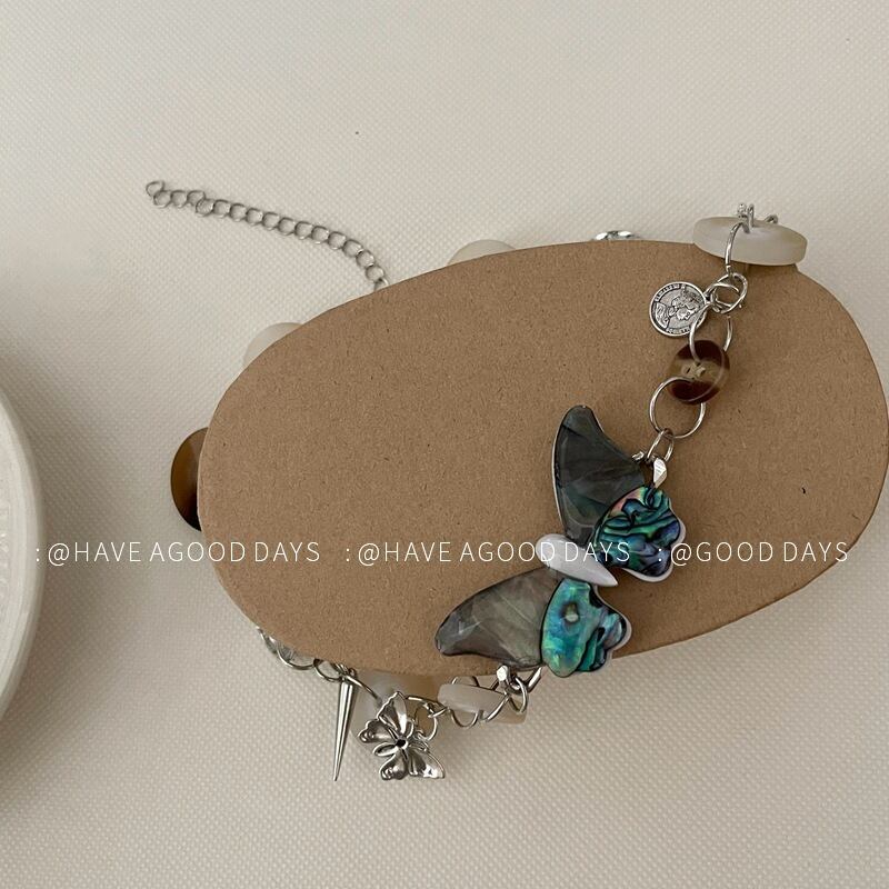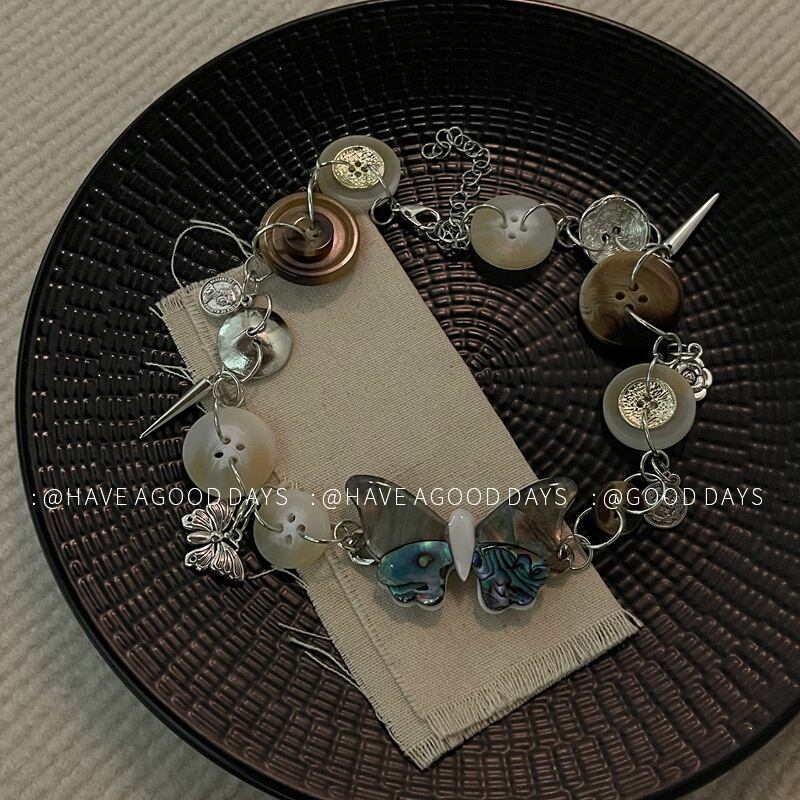 Y2K風 バタフライ×ボタン×ビーズ 個性派チョーカーネックレス ストリート系トレンド YP-057