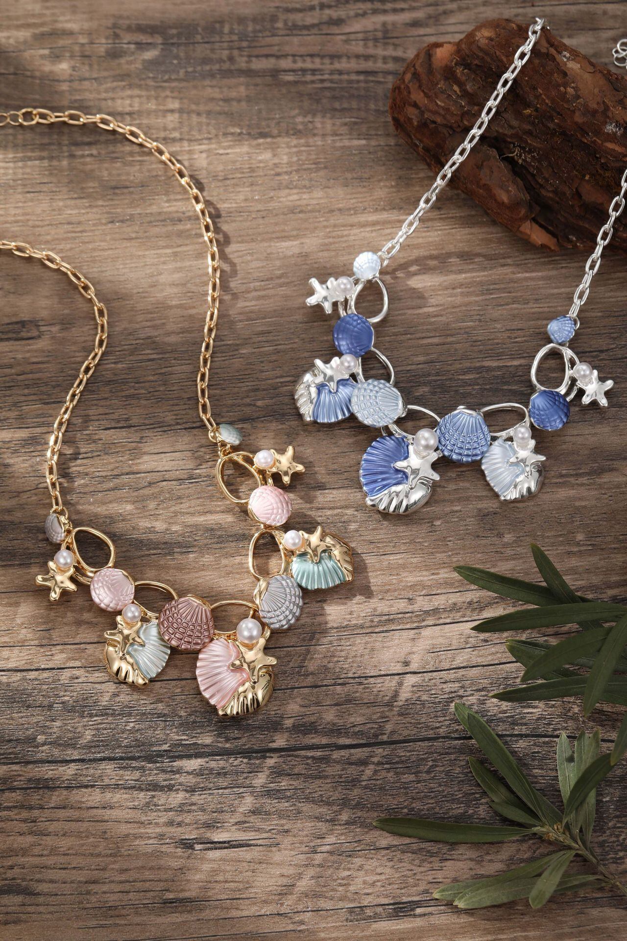 カラフルオイルアート風シェル×スターフィッシュネックレス サマービーチスタイル YP-060