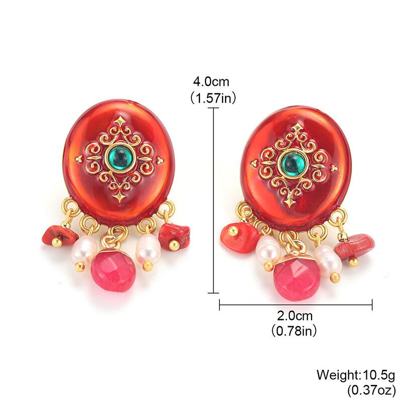 レトロな配色とクラシックなフレームデザインが魅力の天然石ピアス。