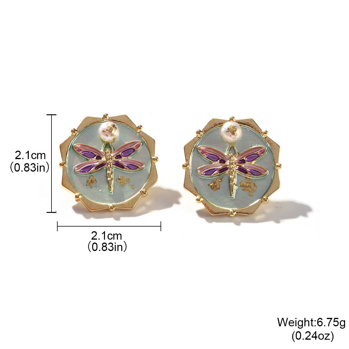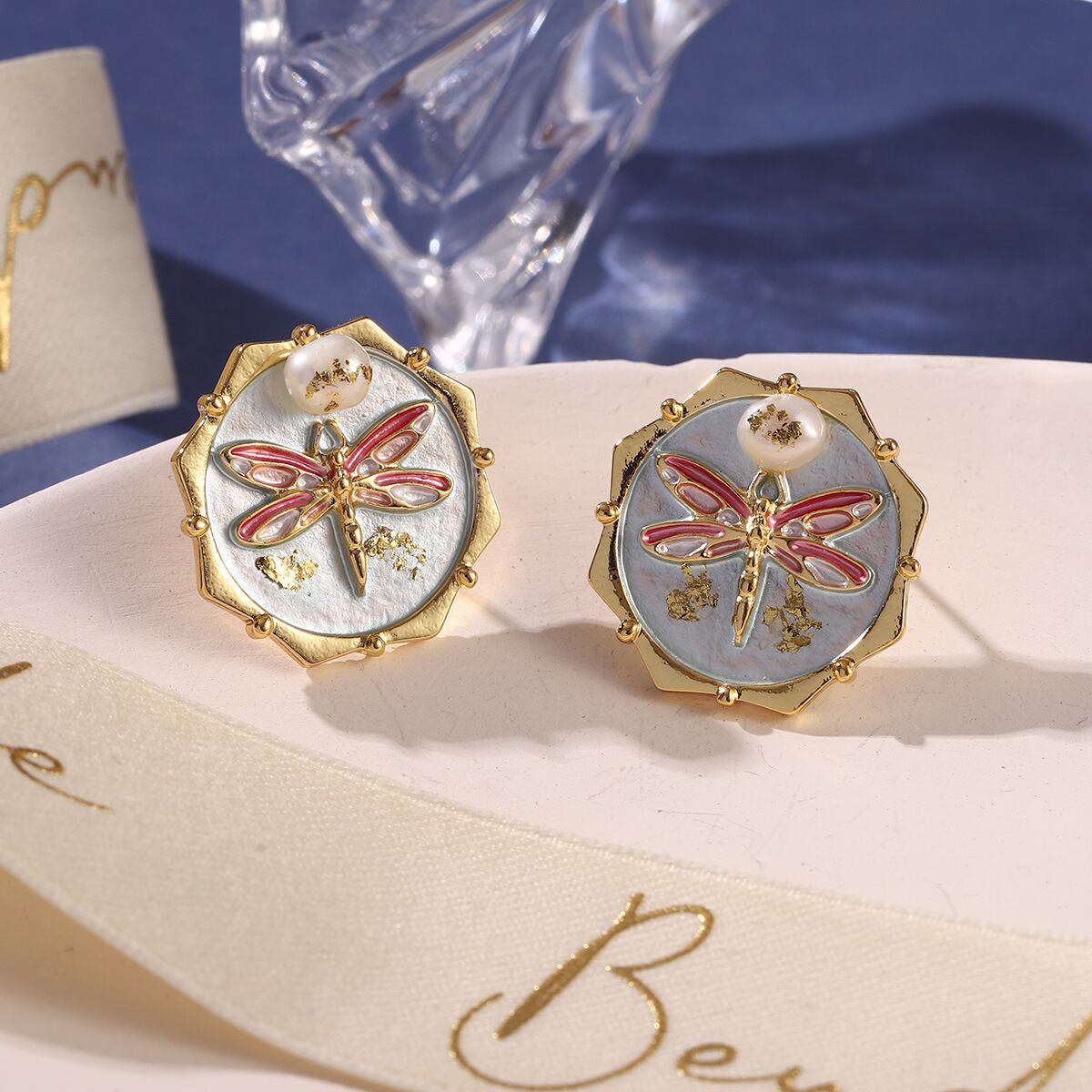 ドラゴンフライ×淡水パールピアス エナメル加工 フレンチレトロデザイン YP-071