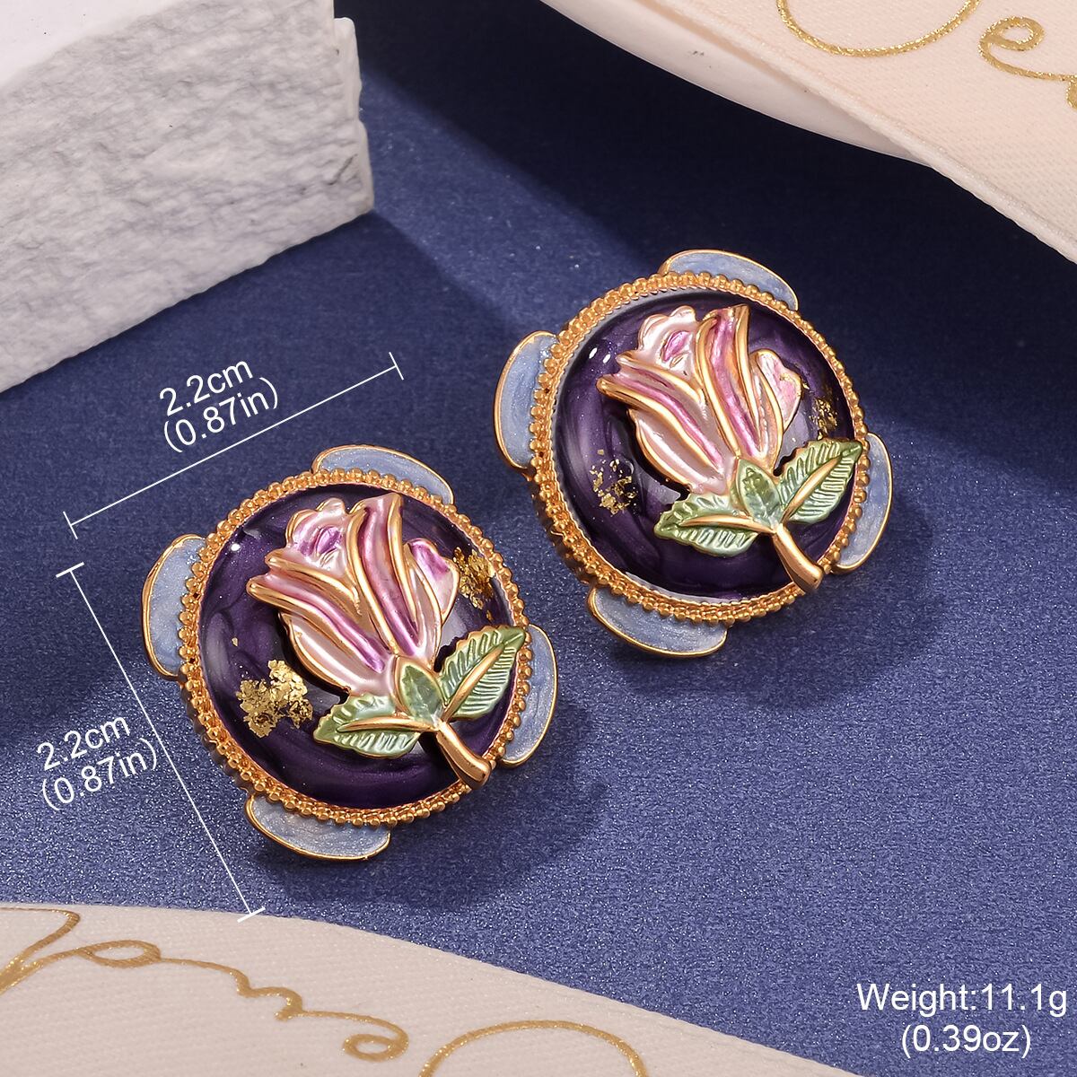 柔らかく艶のある色合いが耳元に品を添え、油絵風の落ち着いた雰囲気が漂います。