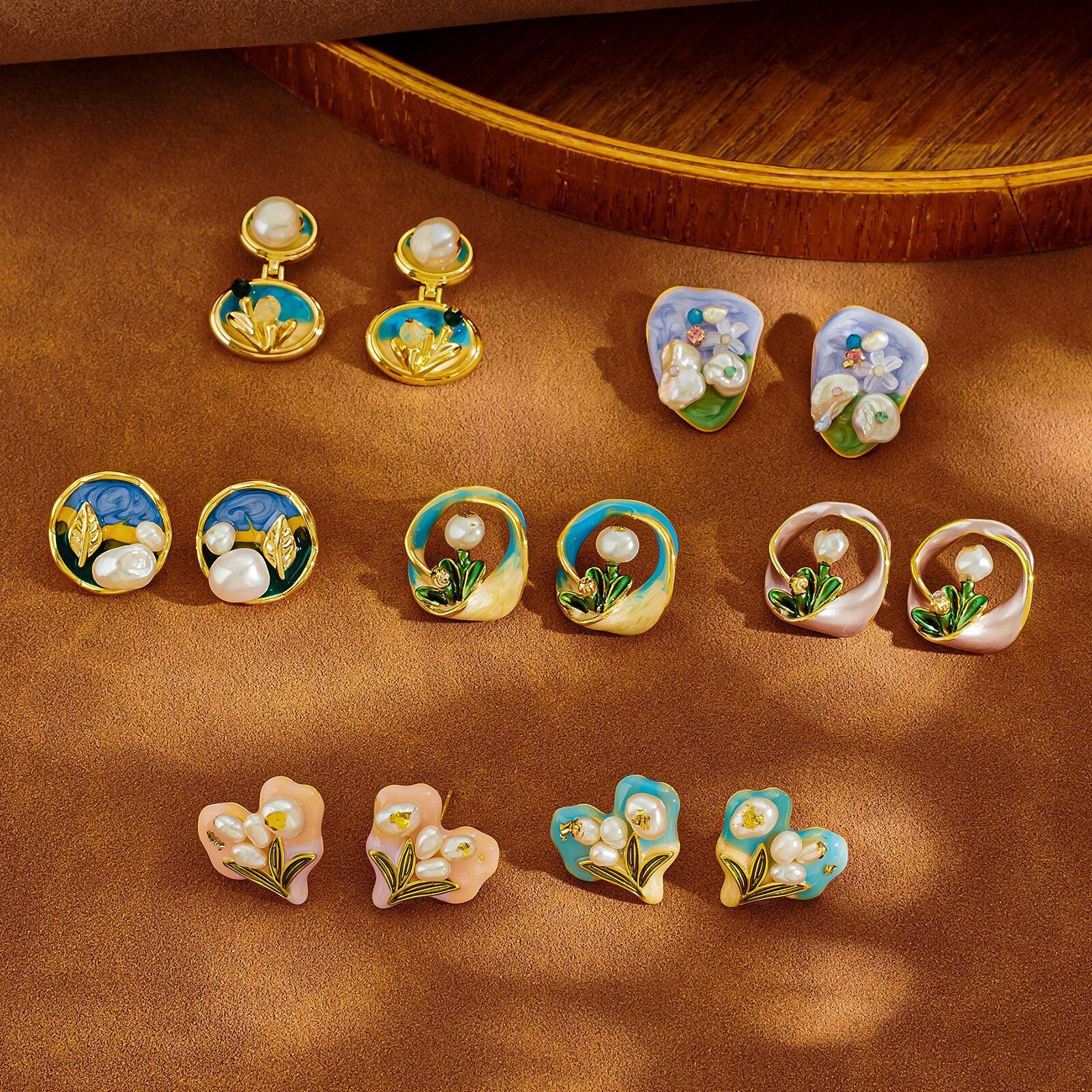 油絵のような繊細な色使いで、耳元にクラシカルな雰囲気を演出。