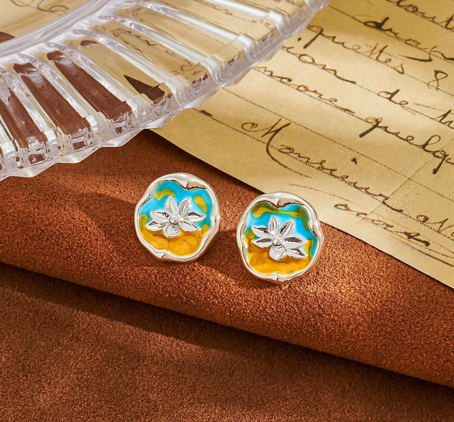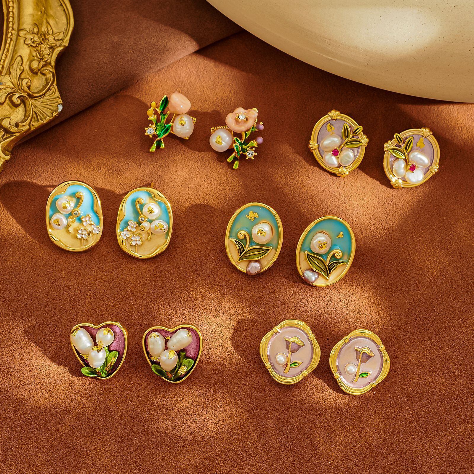 古典的な色合いと油絵のようなタッチで、耳元を華やかに彩ります。