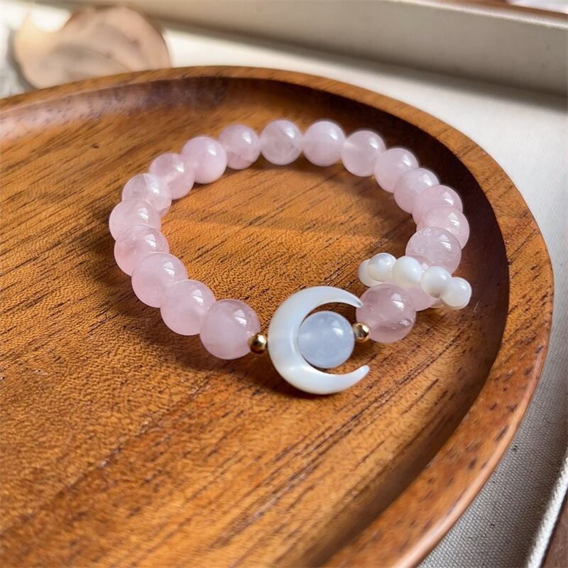 卸売対応 天然ローズクォーツ×シェル×太陽と月チャームブレスレット 春夏新作 レディース天然石 TNSK0122
