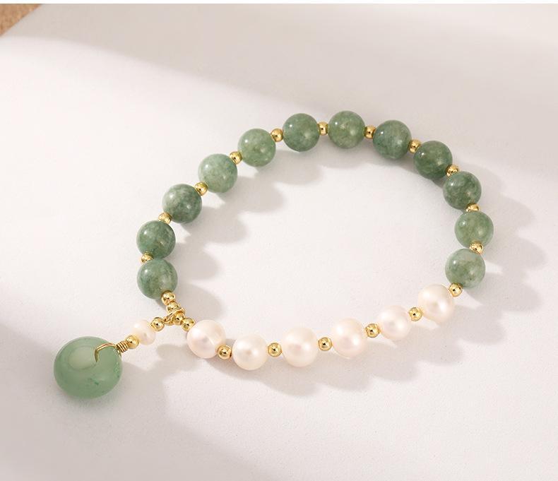 卸売対応 和田玉×淡水パール×瑪瑙 平安リング付き ブレスレット 新中華風 高級感アクセ TNSK0119