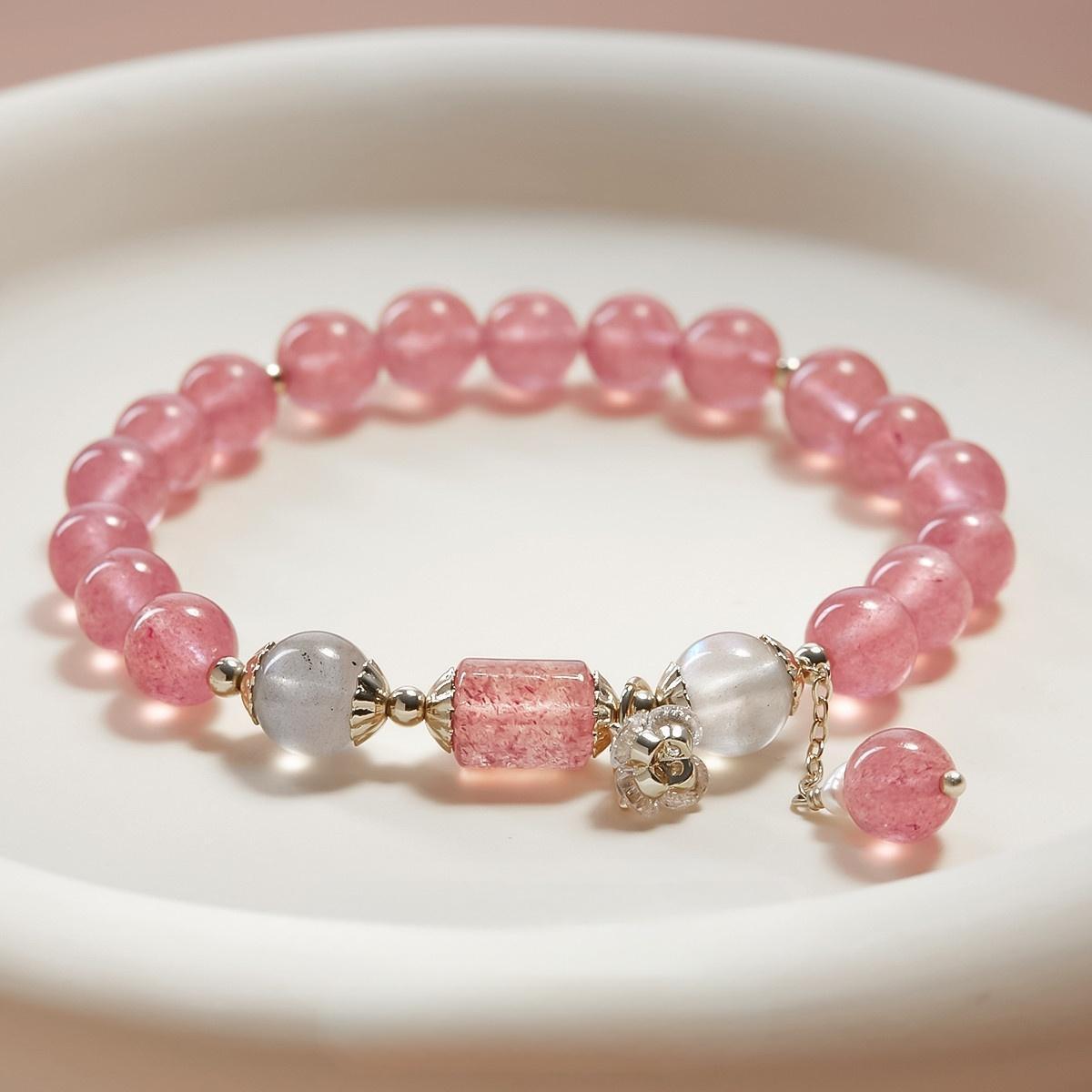 卸売対応 ストロベリークォーツブレスレット 桃花運アップ 恋愛運デザイン 女子人気天然石 TNSK0119