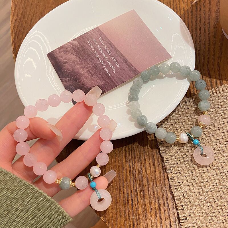 卸売対応 ピンククォーツ×平安リングブレスレット スウィートフェアリースタイル 学生&ギフト向け TNSK0117