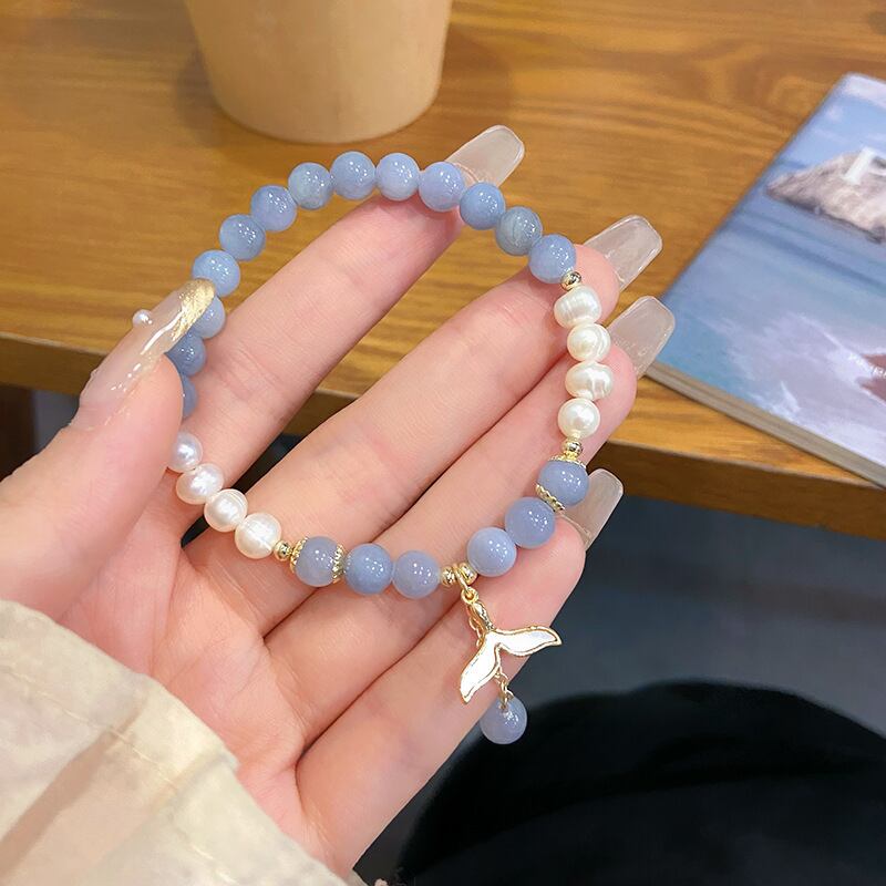 【卸売対応】アクアマリン×貝殻×マーメイドテール×ハートモチーフ 清涼ブレスレット TNSK0108