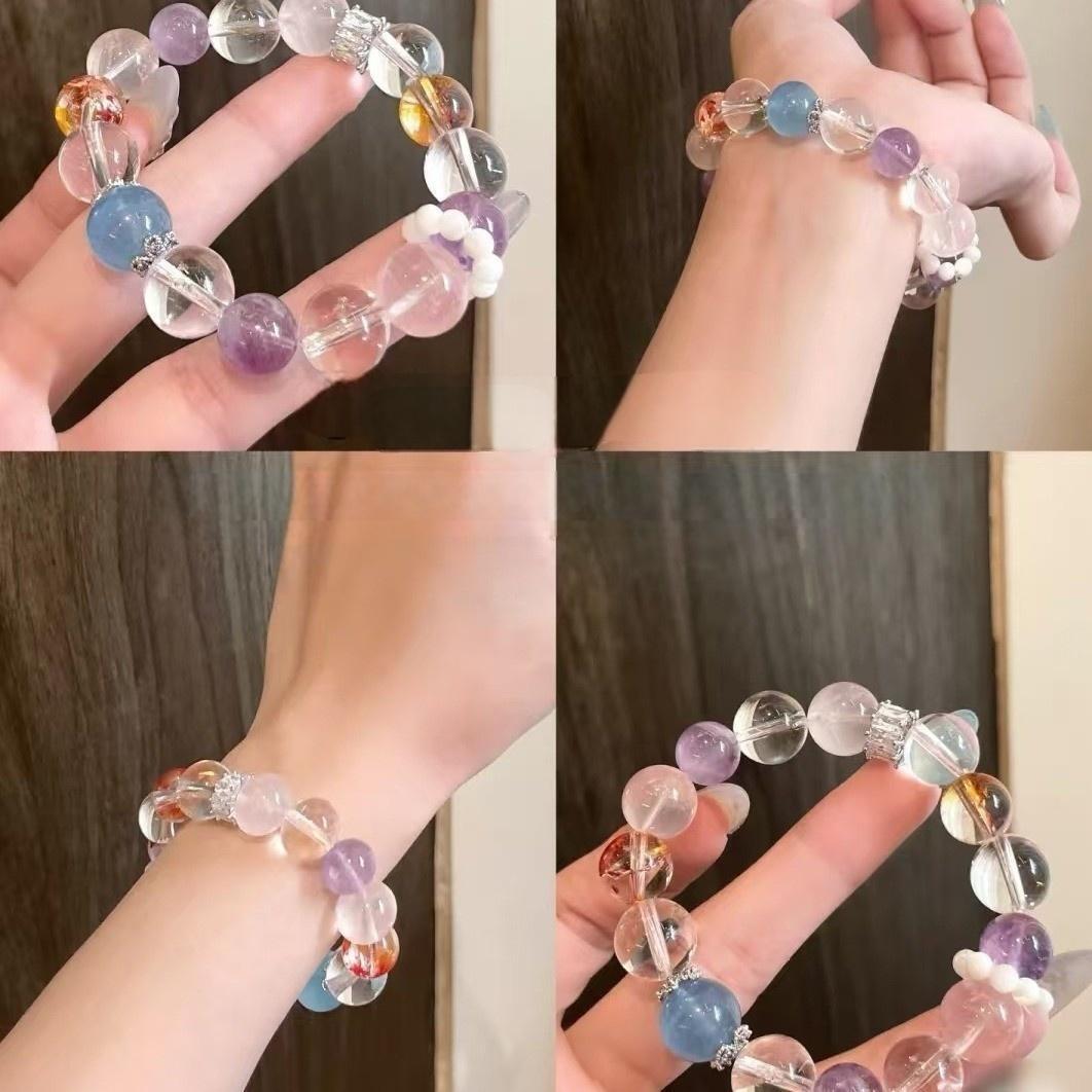 【卸売対応】12mm天然ローズクォーツ×アクアマリン×アメジスト 多宝ブレスレット シンプルデザイン INS人気アイテム TNSK0090