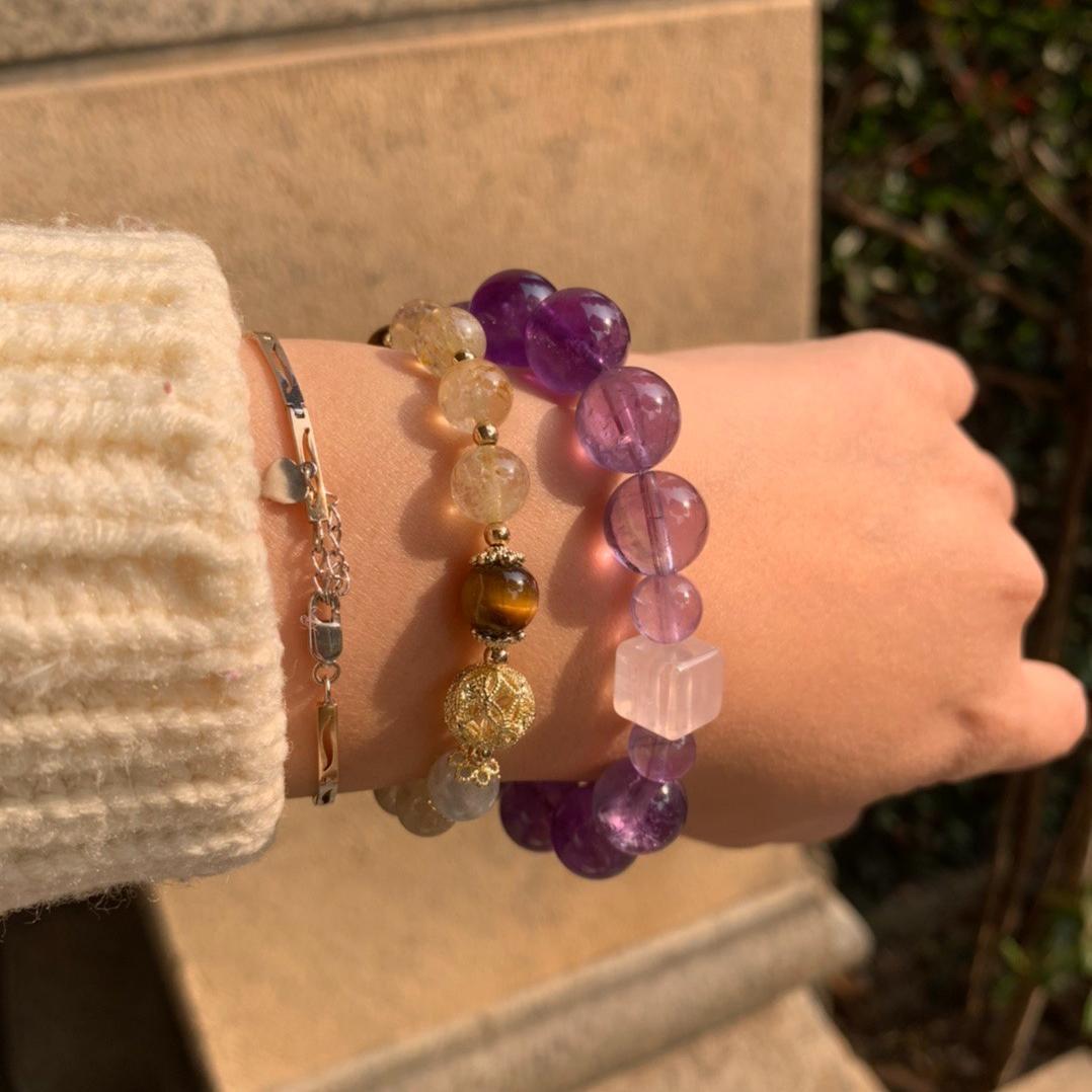 金運・財運を象徴するタイチンクォーツが特徴で、成功や繁栄を願うお守りとしても人気。