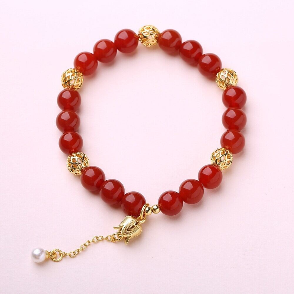 福牌レッドアゲートブレスレット レディース 高級感溢れる玉髄デザイン TNSK0073