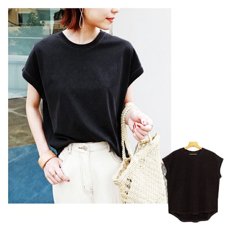 ゆったりとしたドロップショルダーで体型を選ばず、涼しく着られる一枚です。
