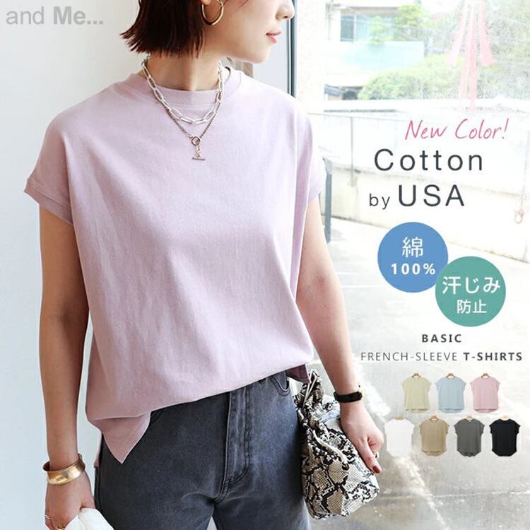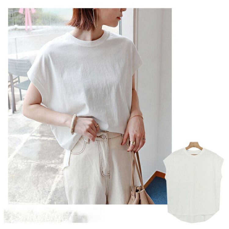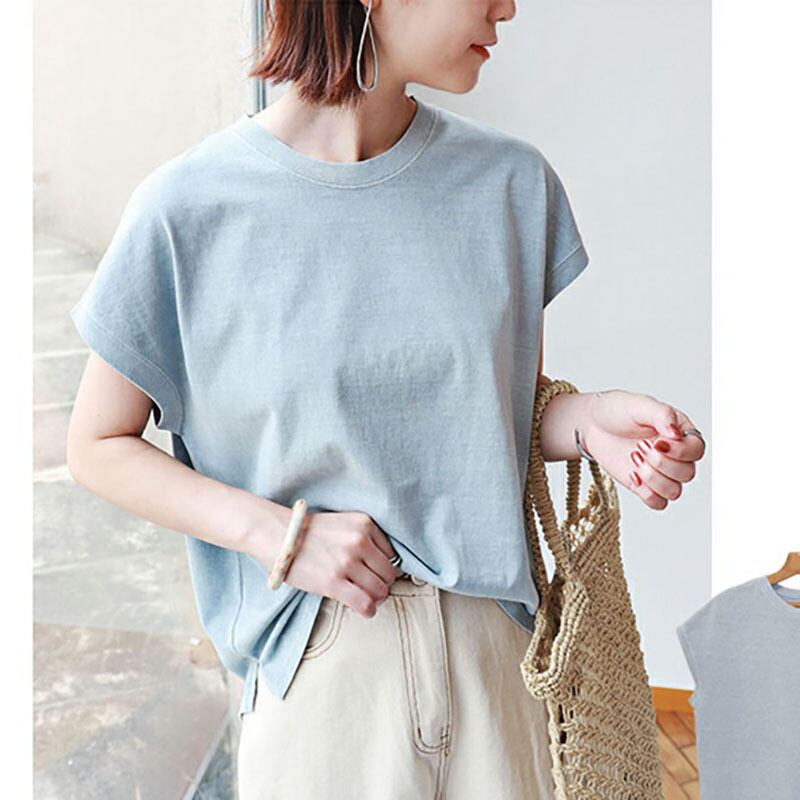 2025新作 接触冷感コットンTシャツ サイドスリット入り ラウンドヘム 半袖トップス 全7色 FS0006