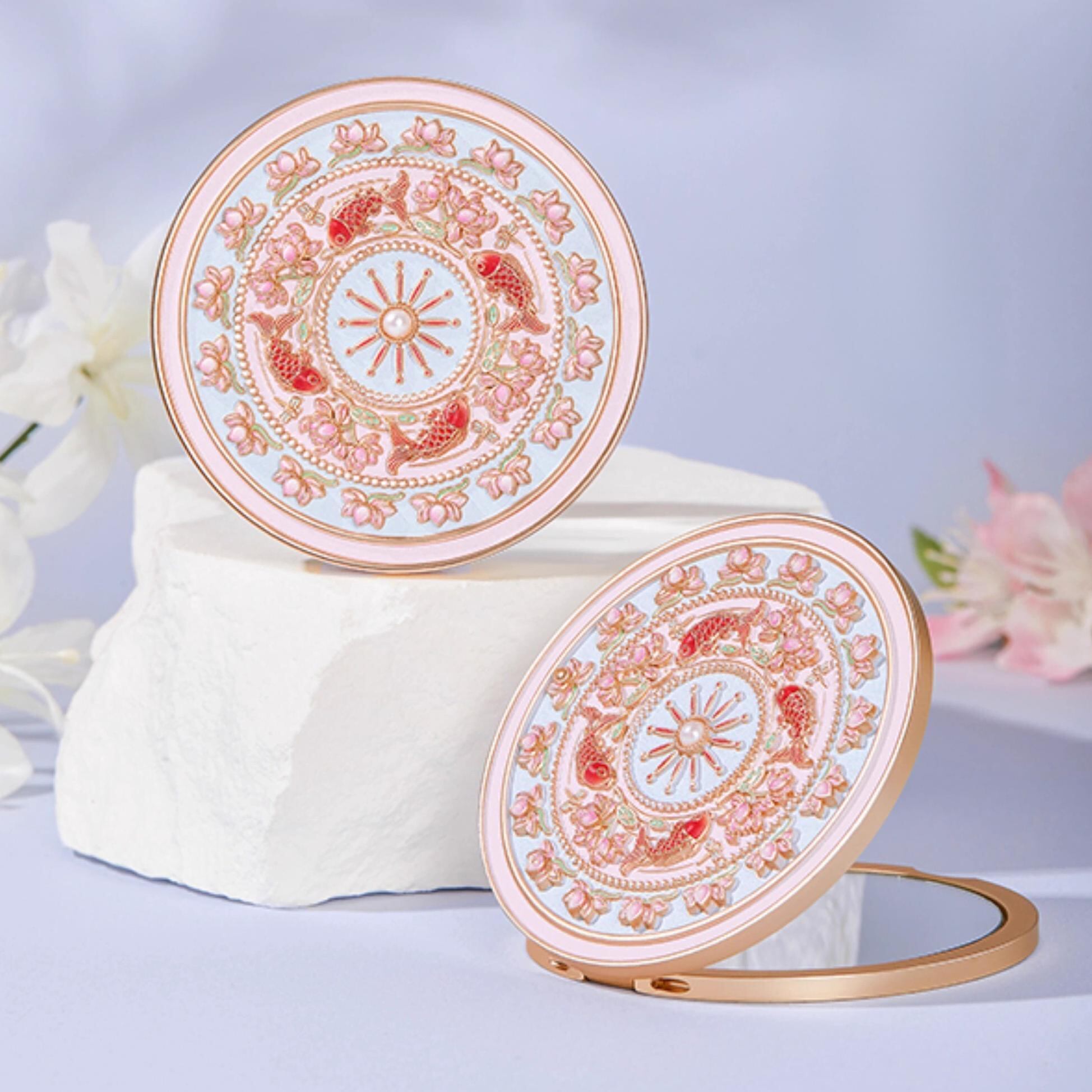 折りたたみ式丸形ミラー コンパクト携帯用【故宮風デザイン】 YP0098