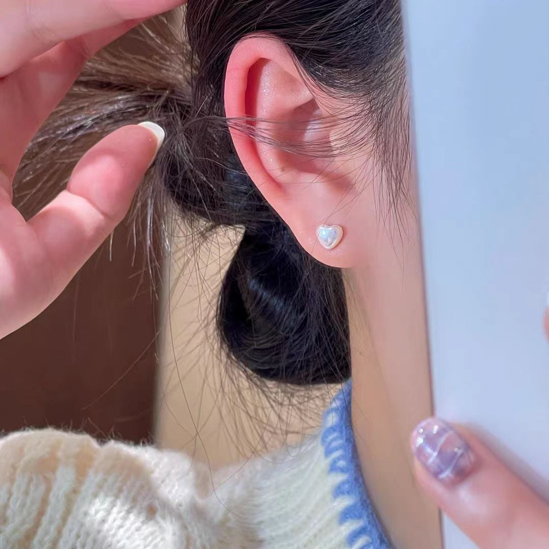韓国風シルバー ハートピアス パール付き 気品とやさしさを纏う新作アクセサリー YP0101