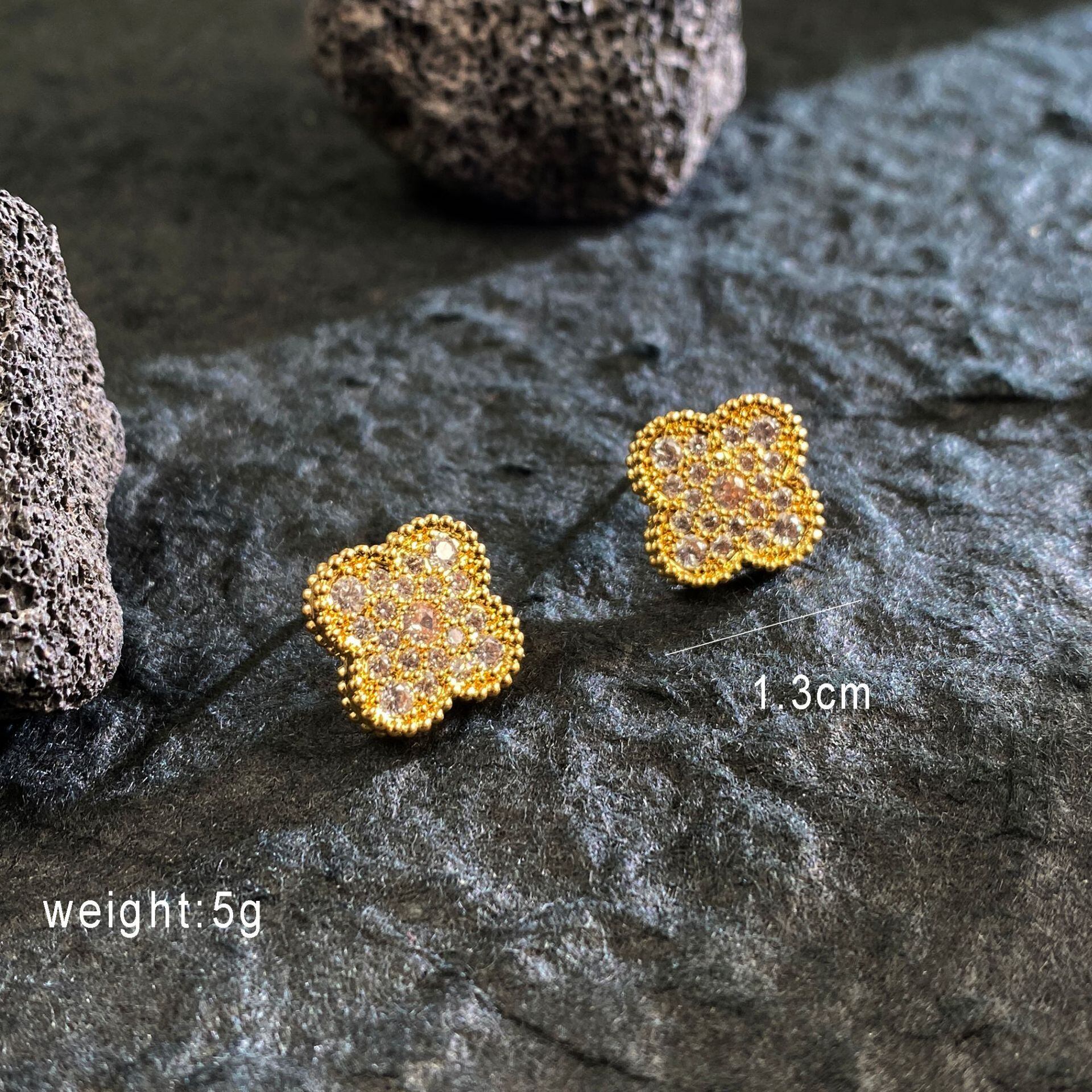 【4点セット】18Kコーティング 四つ葉モチーフ ジルコニアアクセサリーセット(ネックレス・ブレスレット・ピアス・リング) YP0103