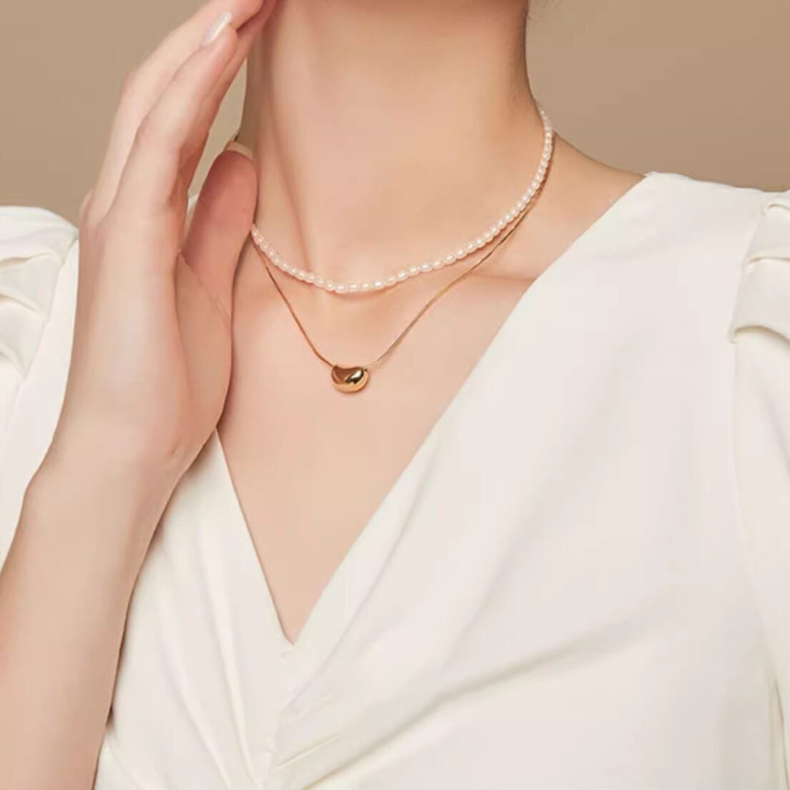 2連パールネックレス 重ね付け風 シンプル×高見え 上品アクセサリー YP0128