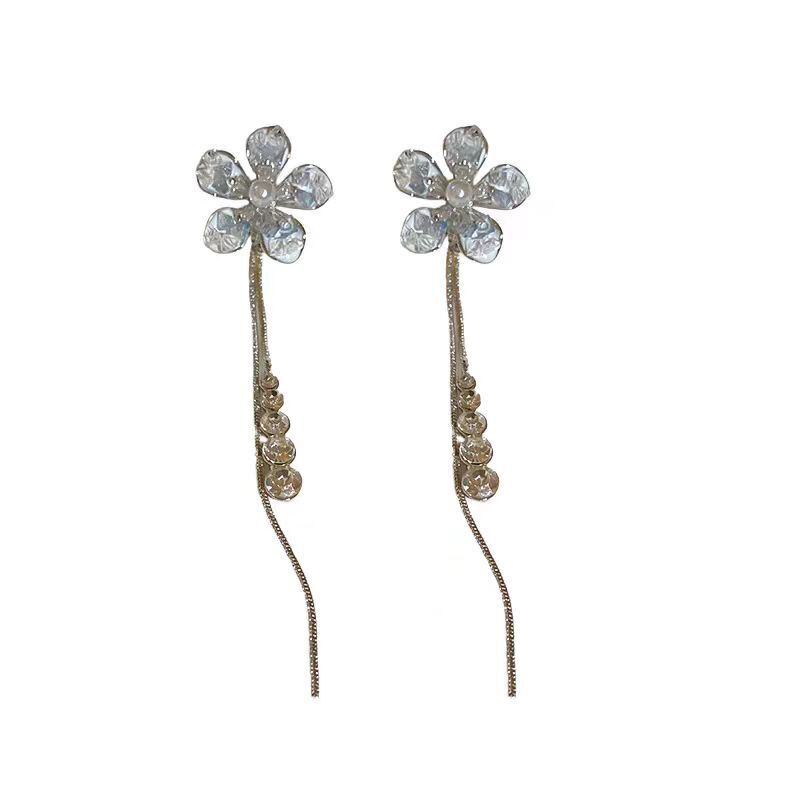 水色クリスタルフラワー 2WAY仕様 流れるフリンジイヤリング YP0138