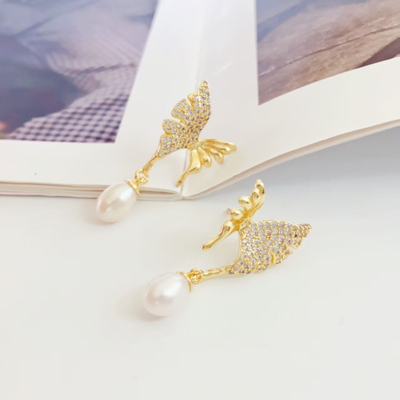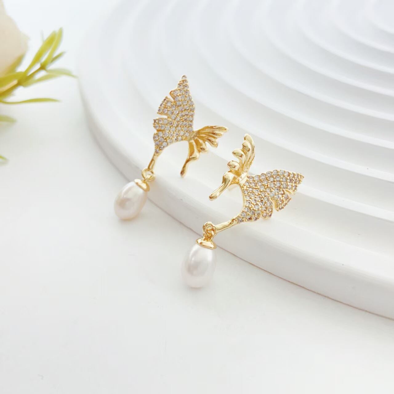 繊細な蝶のデザインが耳元に軽やかさをプラスします。