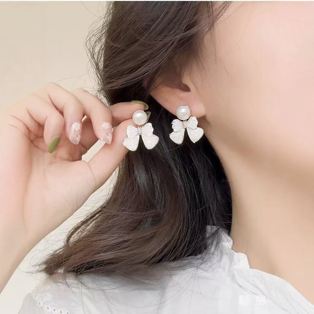 蝶結びモチーフに淡水パールを添えて、華やかさをプラス。