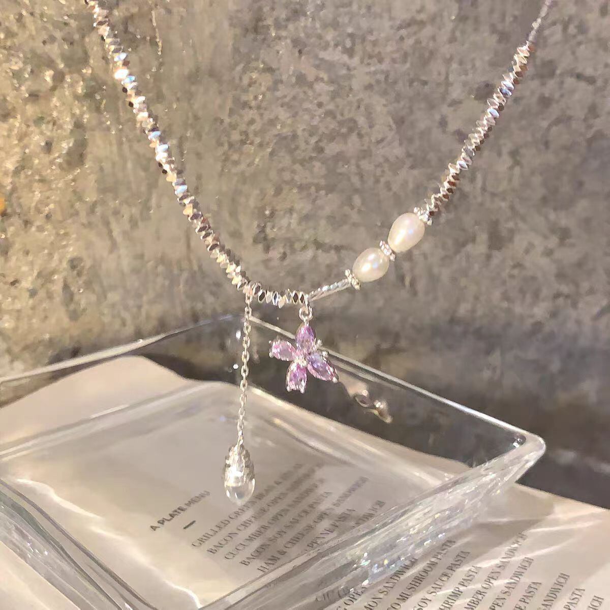 蝶&パールフリンジネックレス 韓国風ビジューデザイン 軽やか高見えアクセ YP0168
