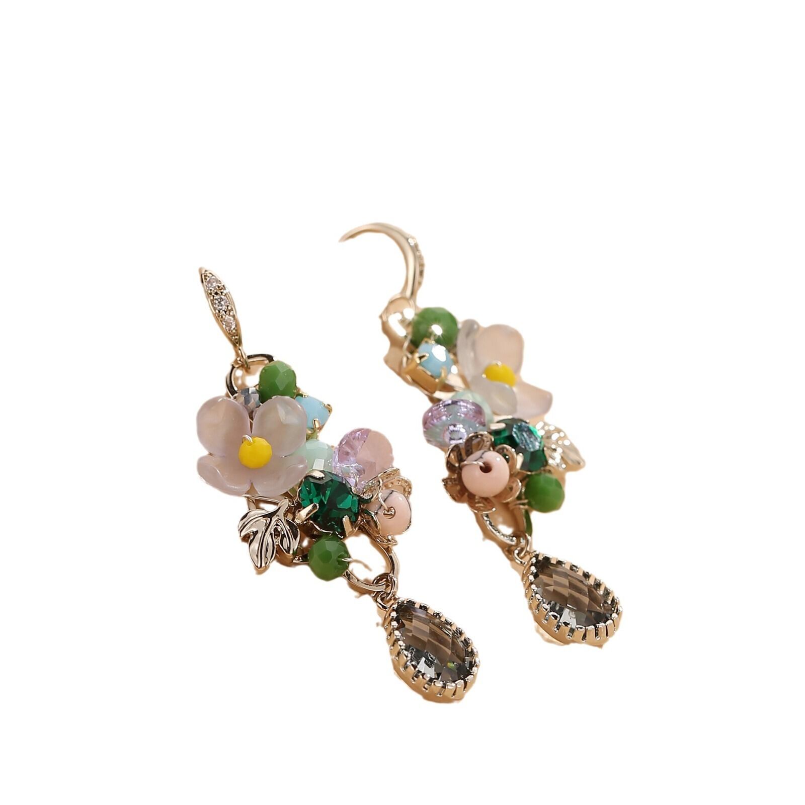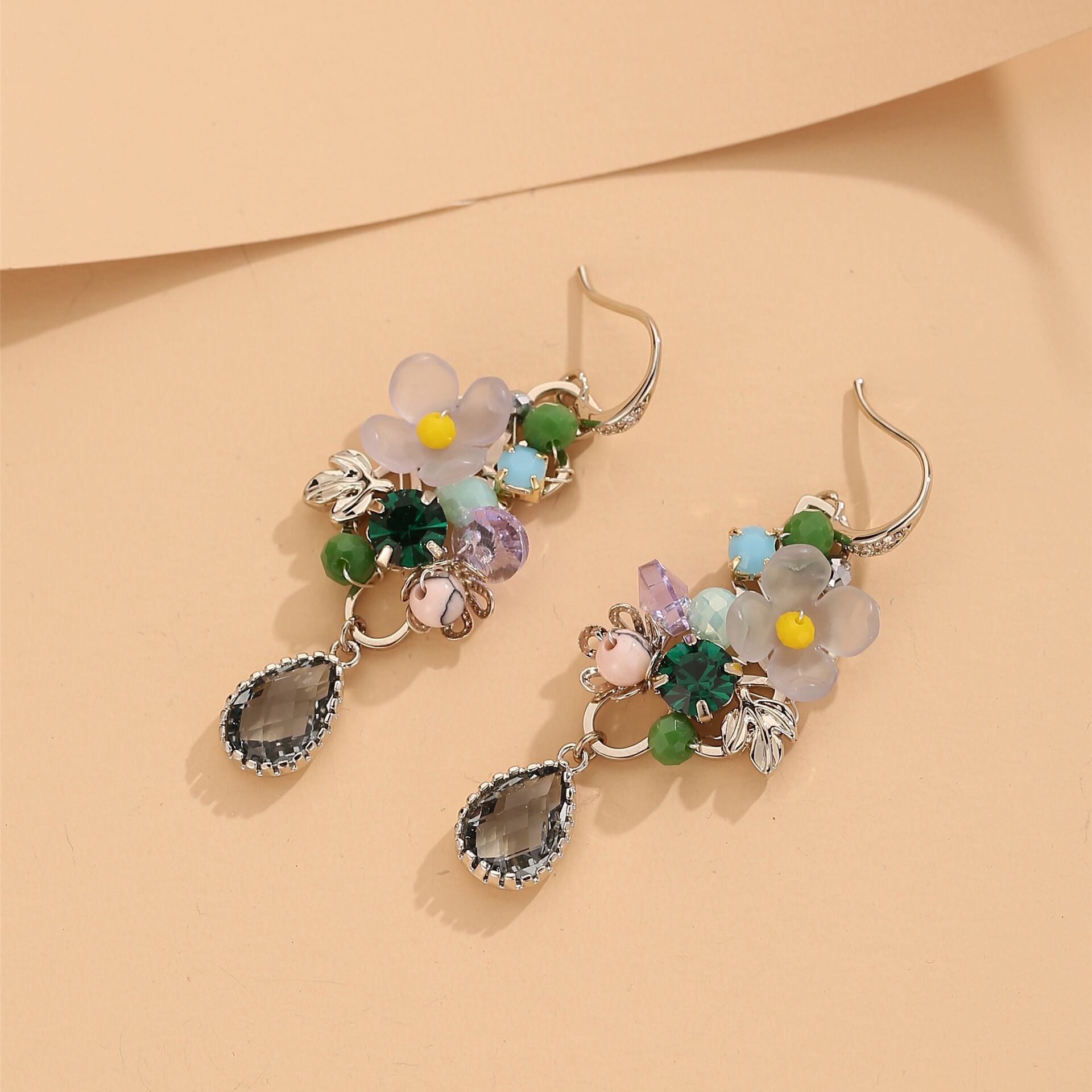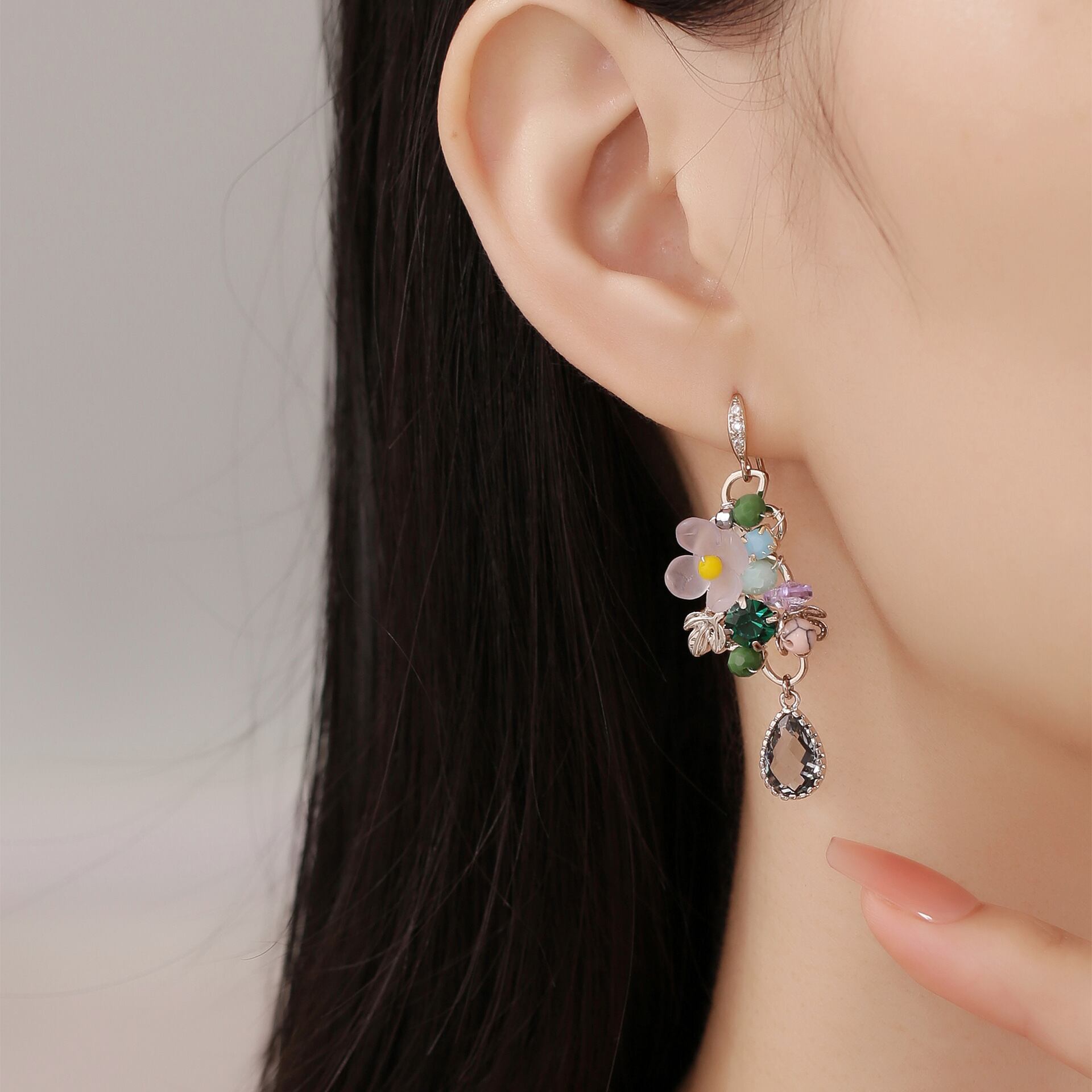 カラフルビーズ×フリンジ ピアス フラワーモチーフ ボヘミアン風 YP0173
