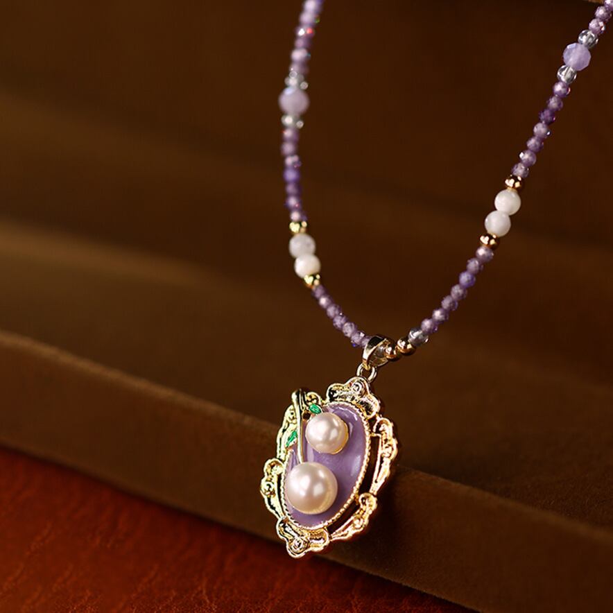 上品な淡水パールを使用したネックレスとピアスのセット。
