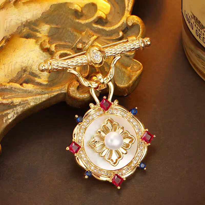 中古風デザインの彩石ブローチ。