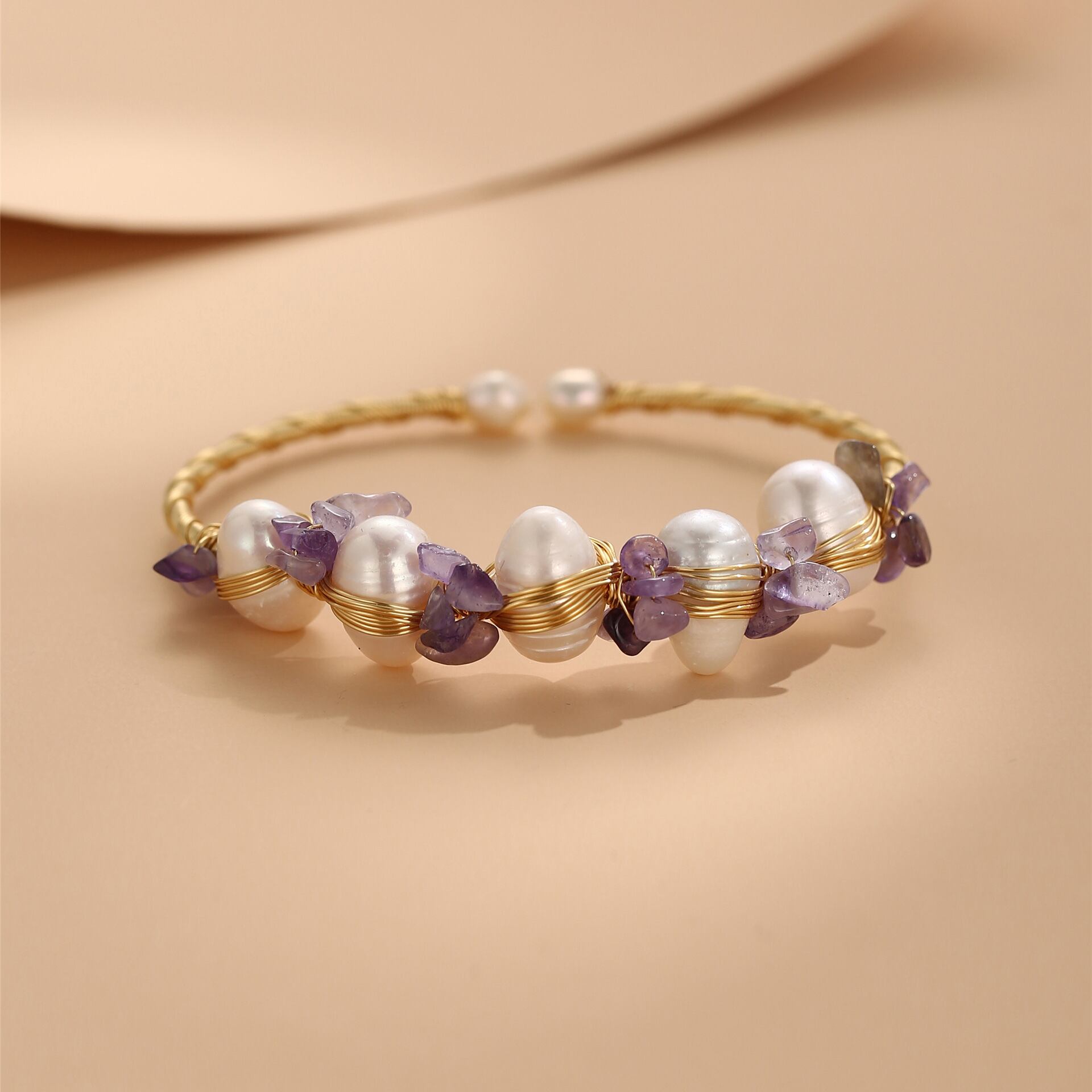 淡水パールとクリスタルを組み合わせた春夏新作ブレスレット。