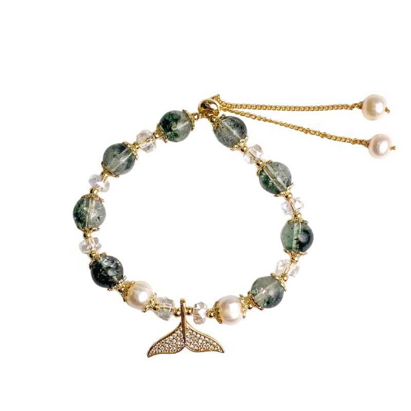 2025新作 グリーンクォーツ×マーメイドテール 淡水パール ブレスレット YP0196