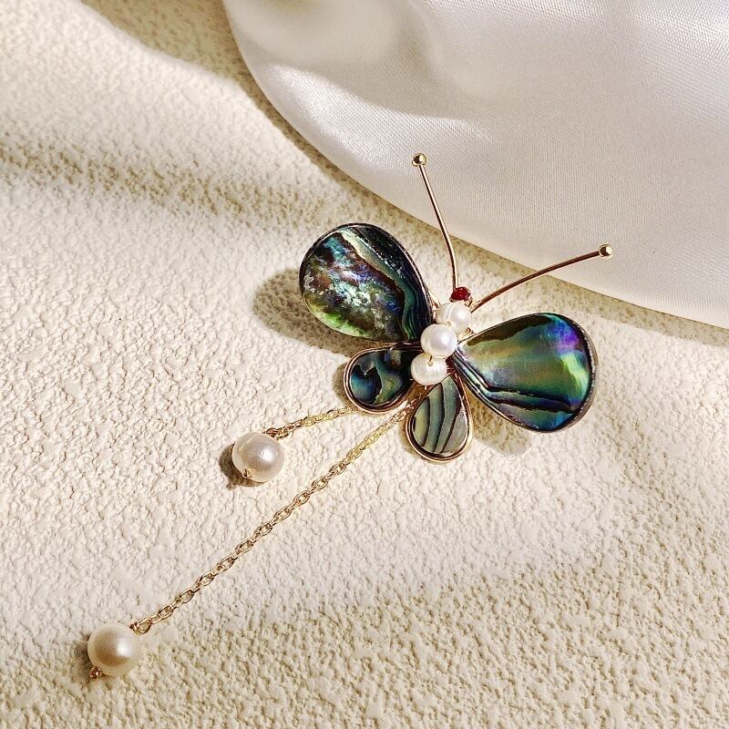 2025新作 アバロンシェル蝶モチーフ 淡水パール付き ブローチ YP0197