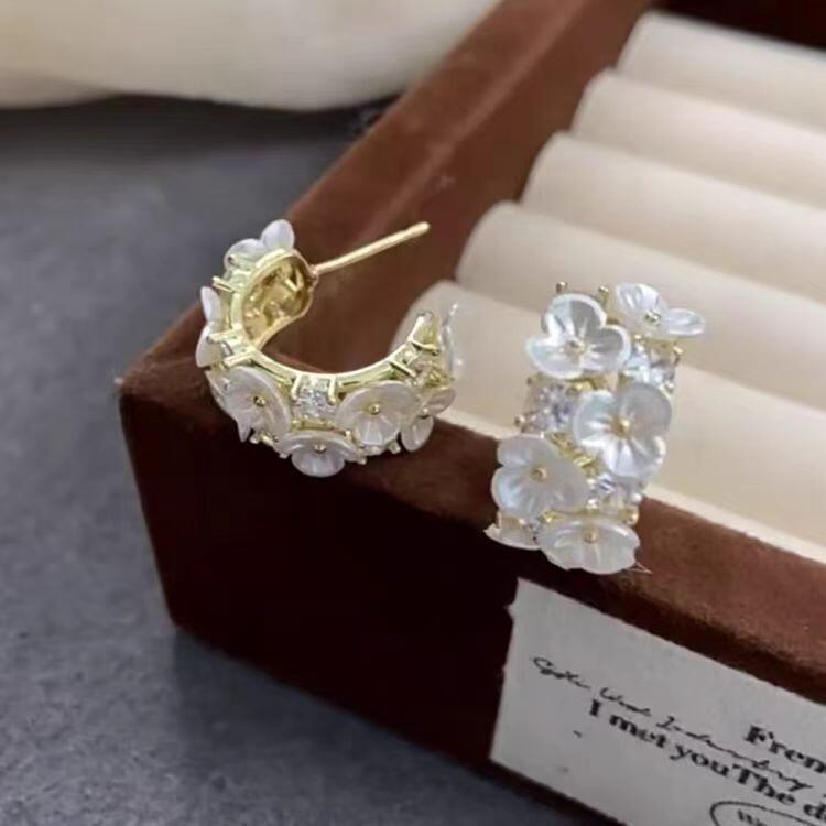 2025新作 フラワーパールC型ピアス 韓国風 高級感イヤリング YP0201
