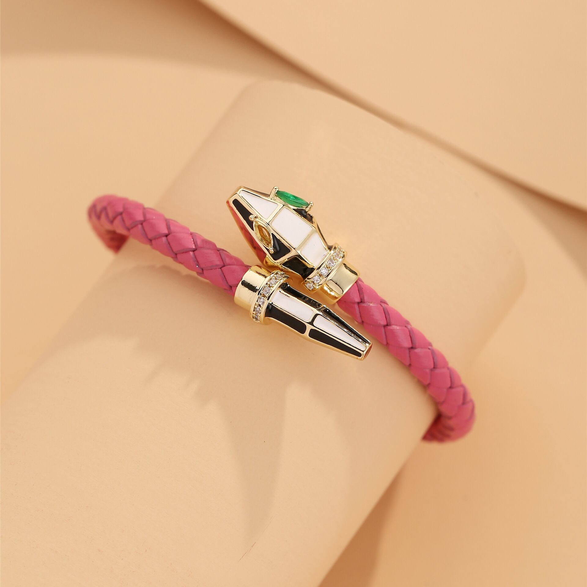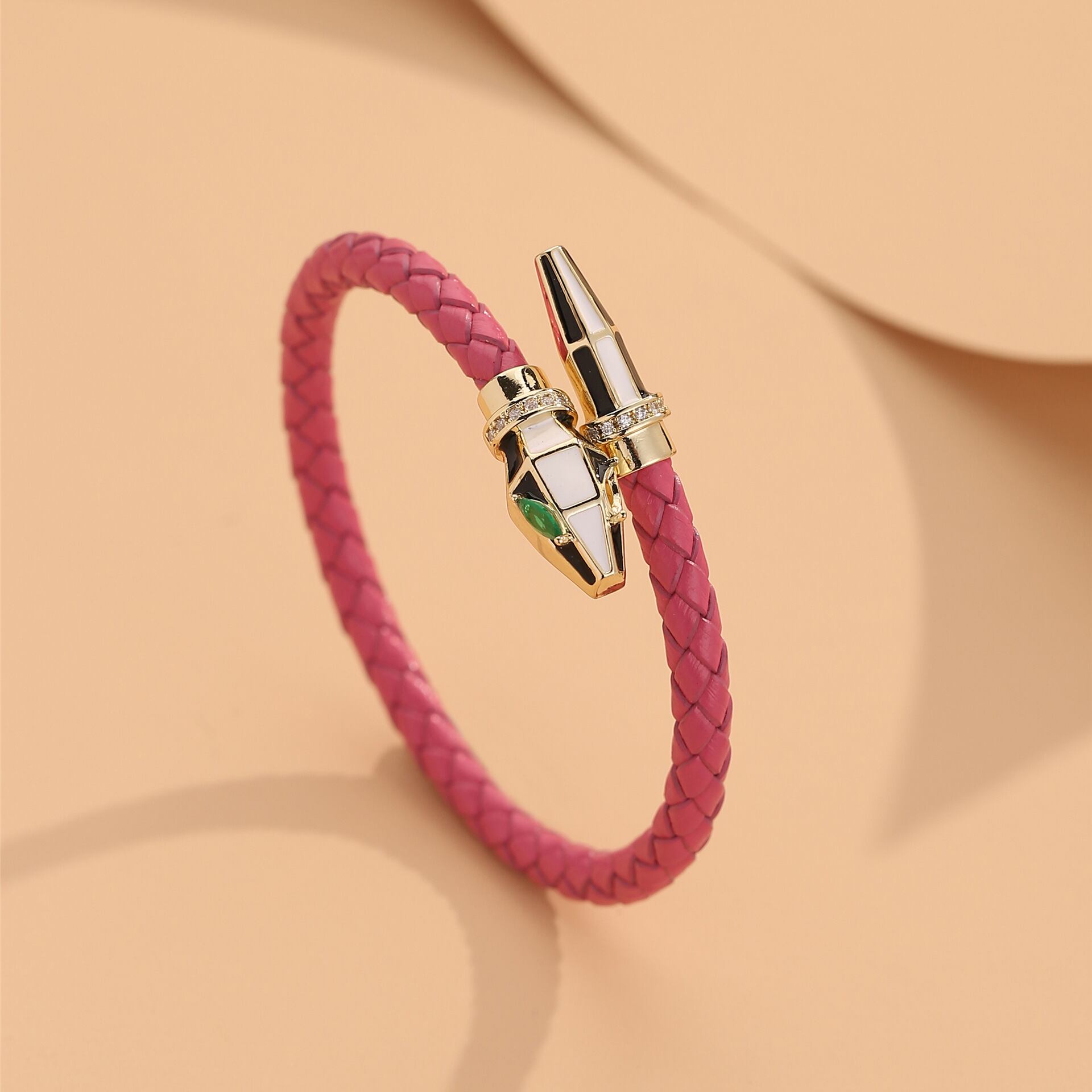 PUレザーを使用したスネーク風デザインのブレスレットです。