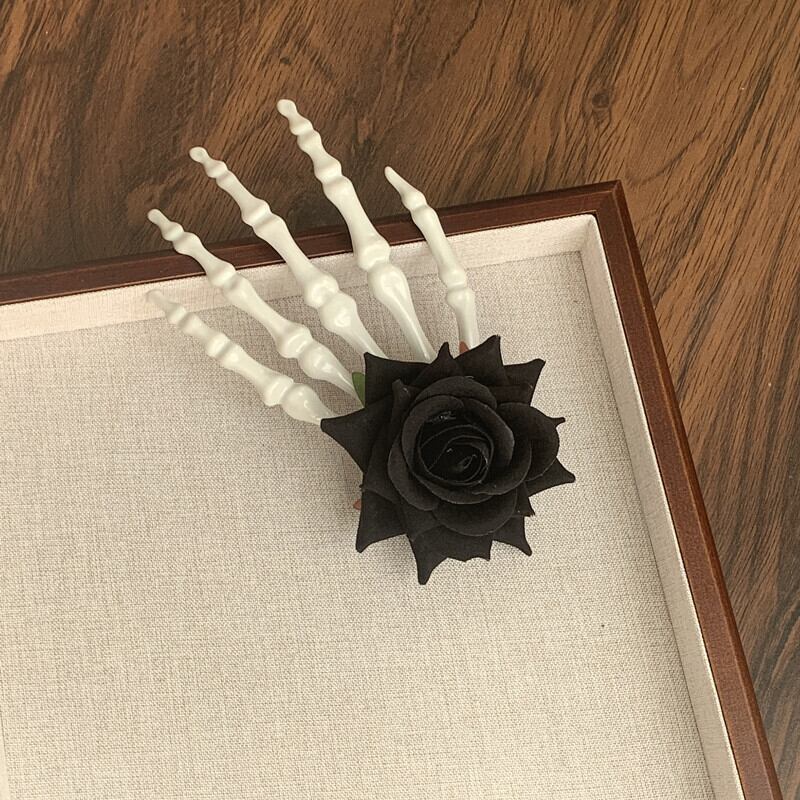 赤い花と黒い花を組み合わせた手骨モチーフのヘアクリップ4点セット。