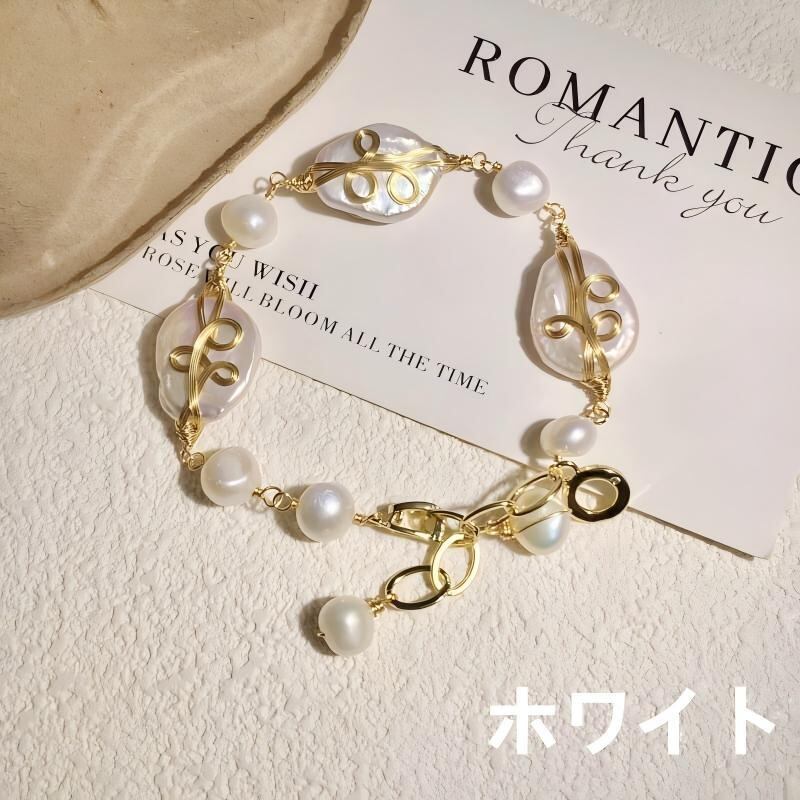 個性豊かなバロック淡水パールを使用し、手作業で丁寧に仕上げたブレスレットとネックレスのセットです。
