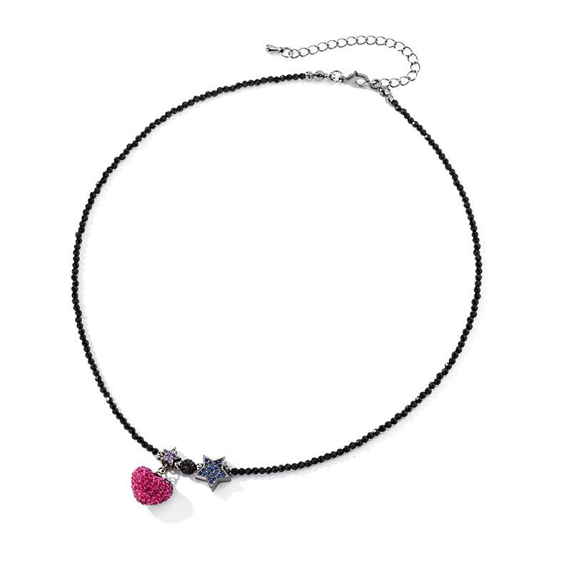 満钻のハートチャームとスターのクリスタルが胸元で輝く華やかなネックレスです。