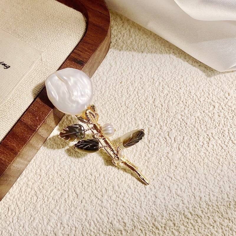 大粒バロックパールのリーフブローチ 上品エレガントな大人アクセ YP0286