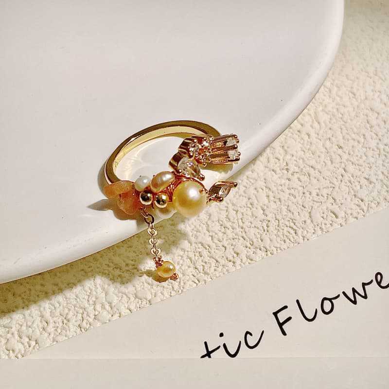 月モチーフにパールをあしらった、繊細でやさしい印象のリングです。