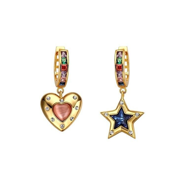 カラフル ハート星 アシンメトリー ピアス 925銀針 欧米風 YP0303