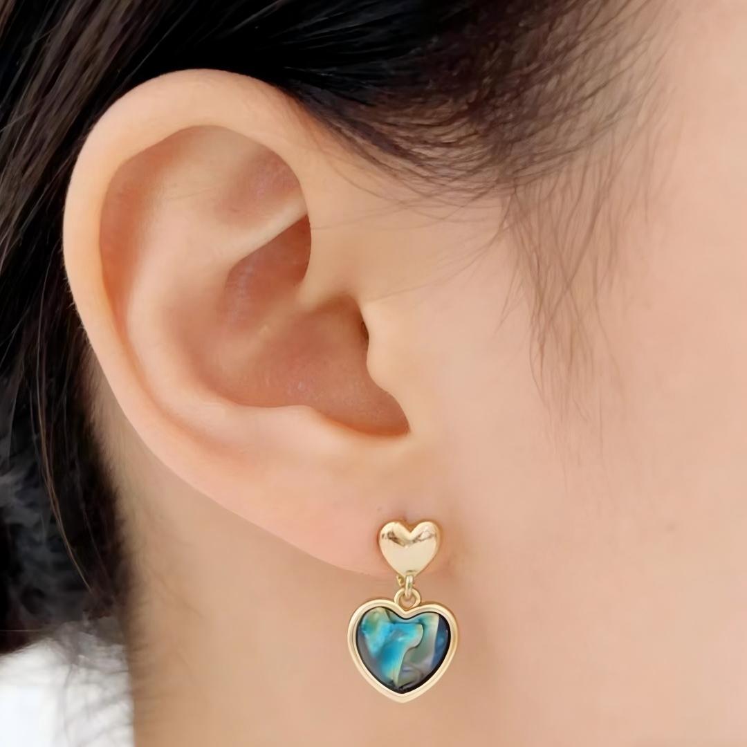 ブルーのハートモチーフとパールを組み合わせた上品な耳元アクセサリー。