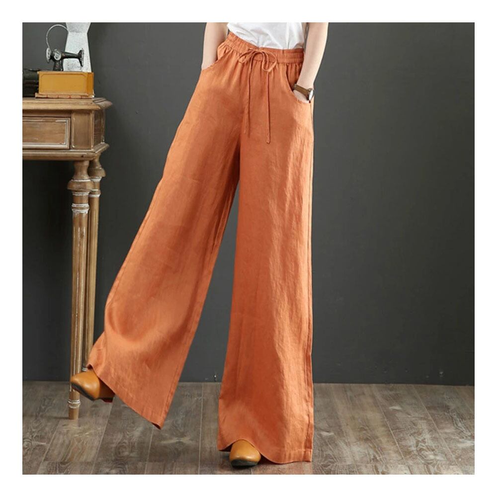 ワイドパンツ 幅広ズボン ロングパンツ レディース ルーズフィット ゆったり 無地 ゴムウエスト 着心地柔らかい 麻混素材 女性 ファッション カジュアル 春 秋 夏 IB0077