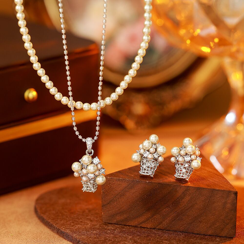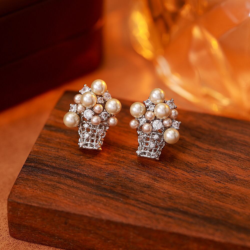 モカカラーを基調にした、ポップコーンモチーフのパールアクセサリー。