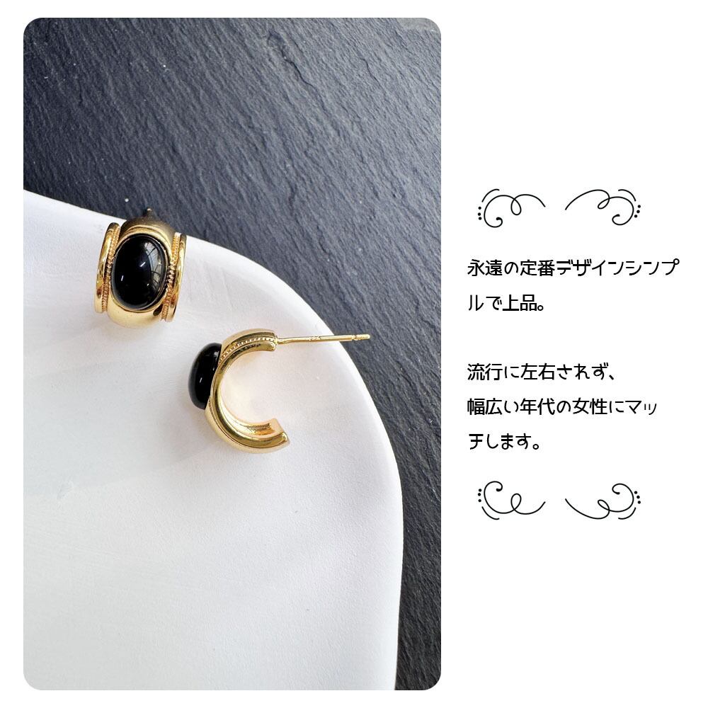 イヤリング ピアス 半円 黒い石 大人っぽい クラシック シンプル 個性的 フォーマル カジュアル アクセサリー ファッション プレゼント ギフト IB0146
