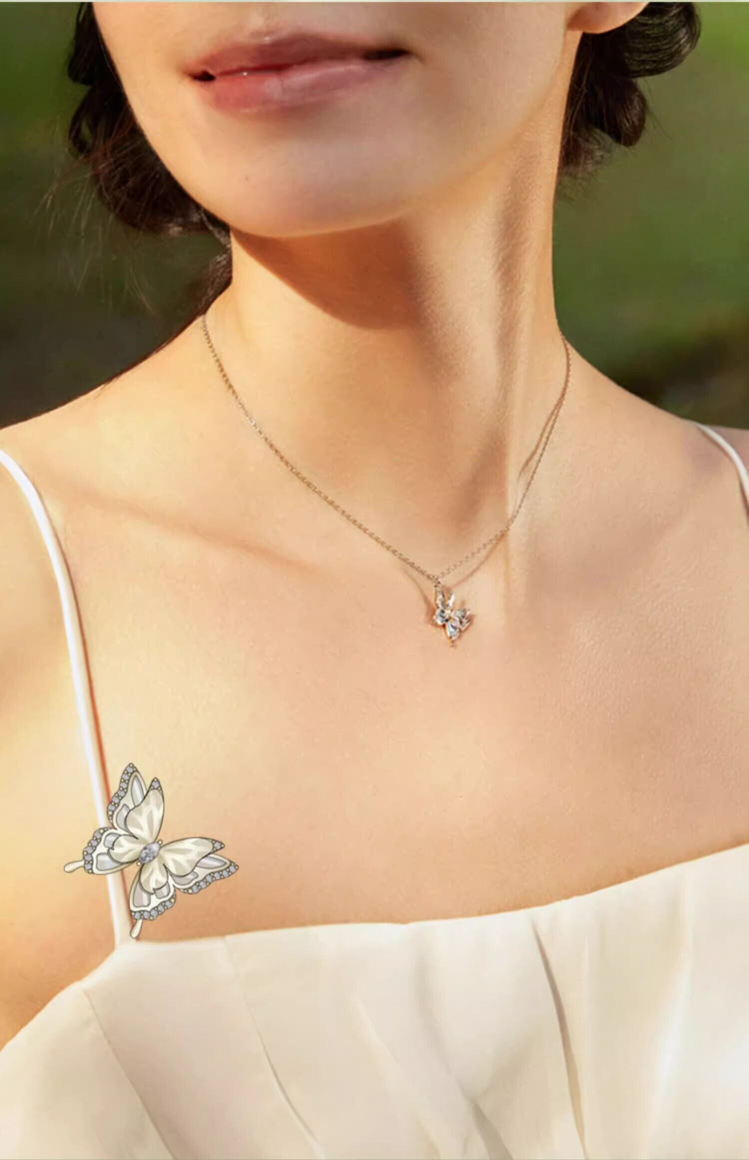 AJIDOU秘境蝶影シリーズ、輝くジルコニアが施された精巧で優雅なバタフライネックレスです